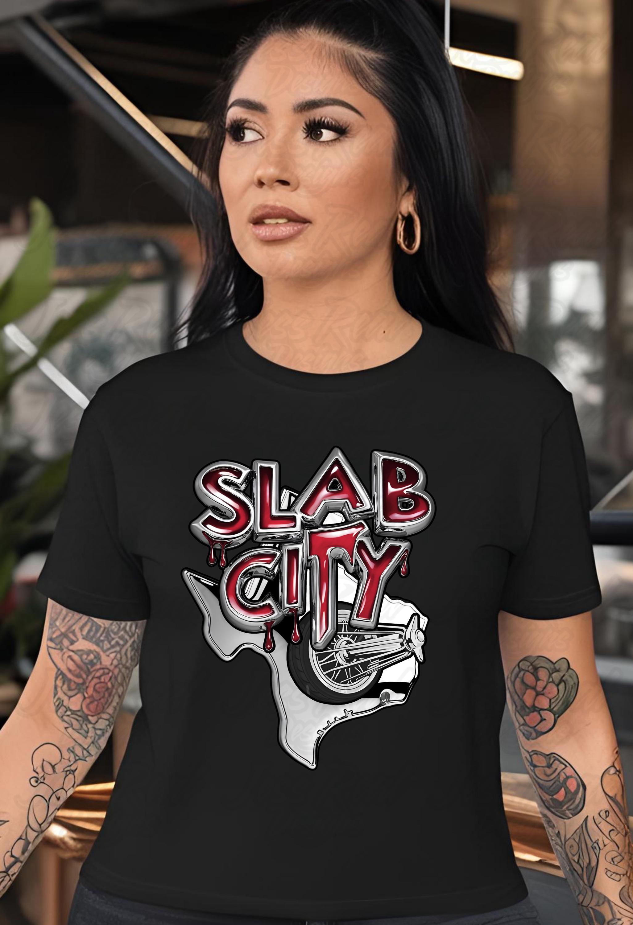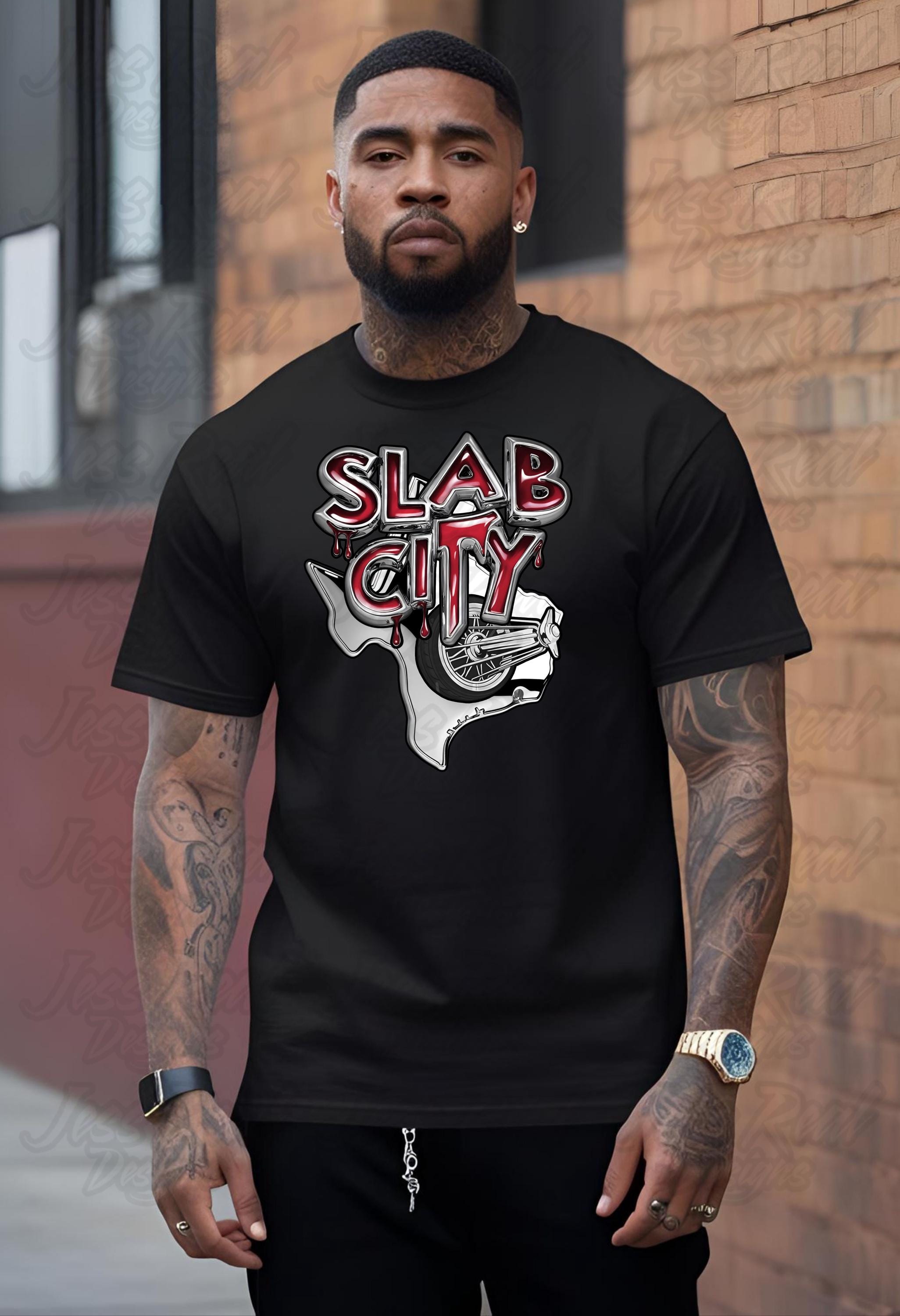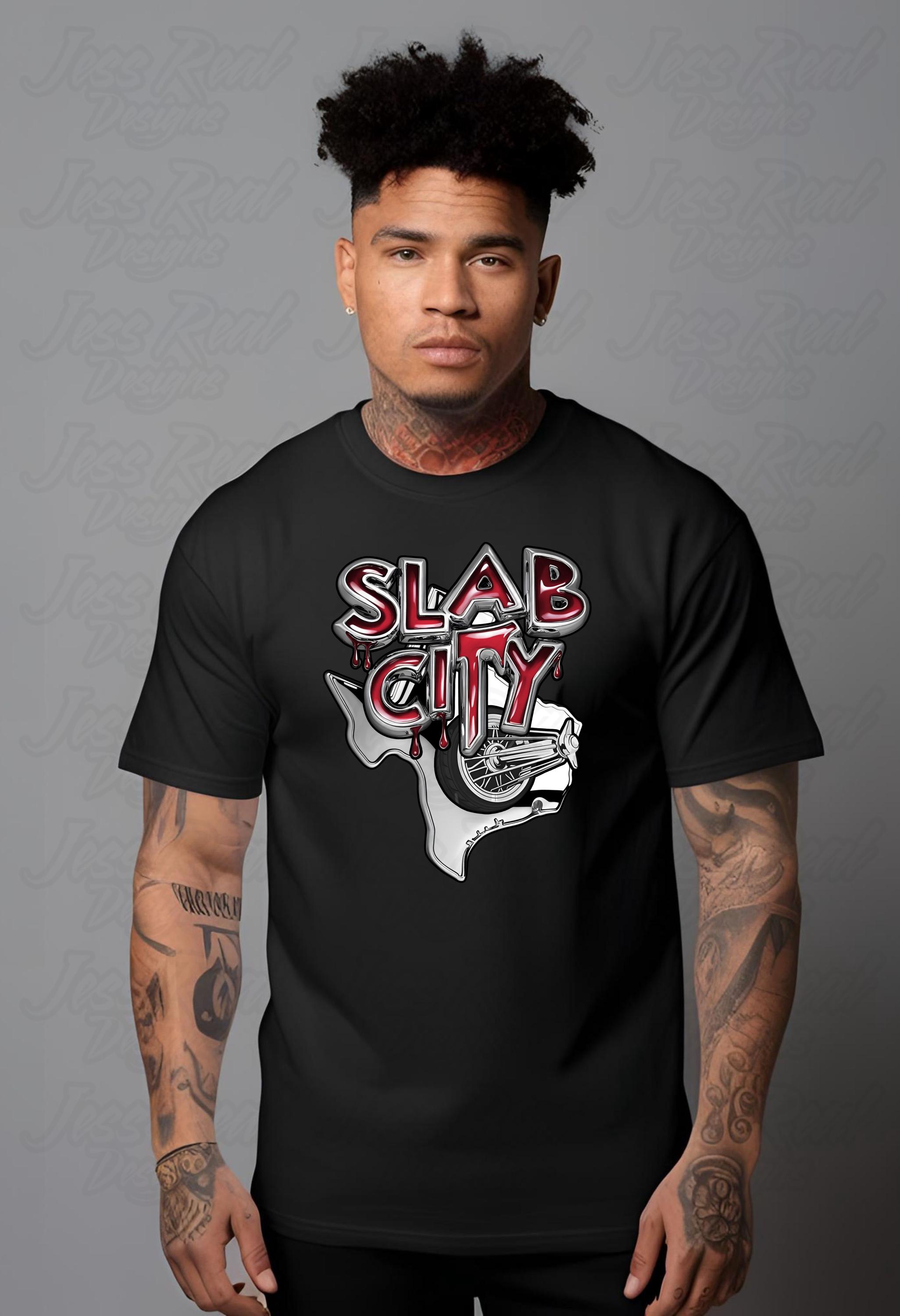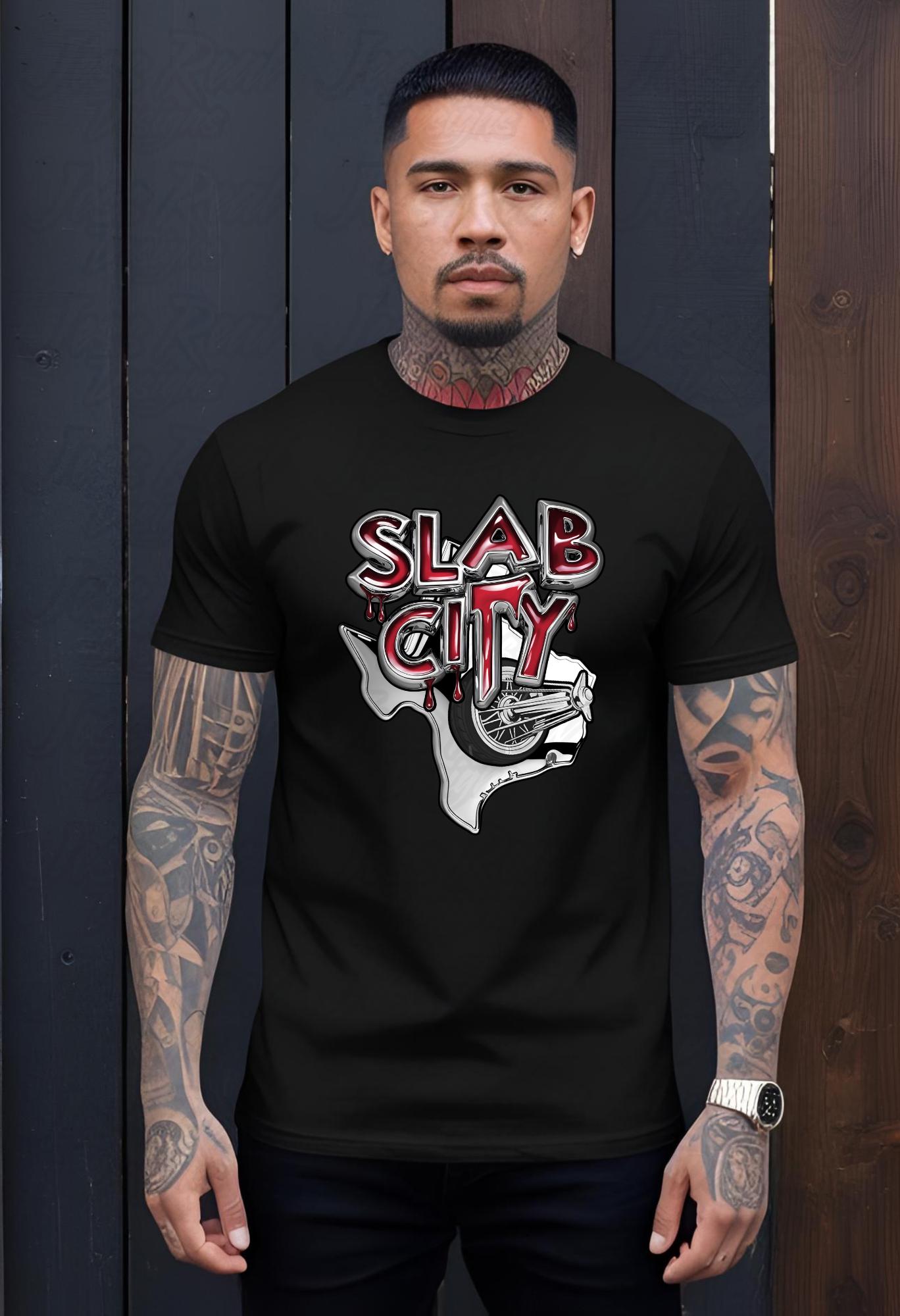Experience Houston's unique slab culture with our street wear shirt. Showcasing super poker rims and sleek chrome accents, our shirt is the perfect way to represent the city's iconic style. Make a statement with our Houston 'Slab C25ity' shirt.