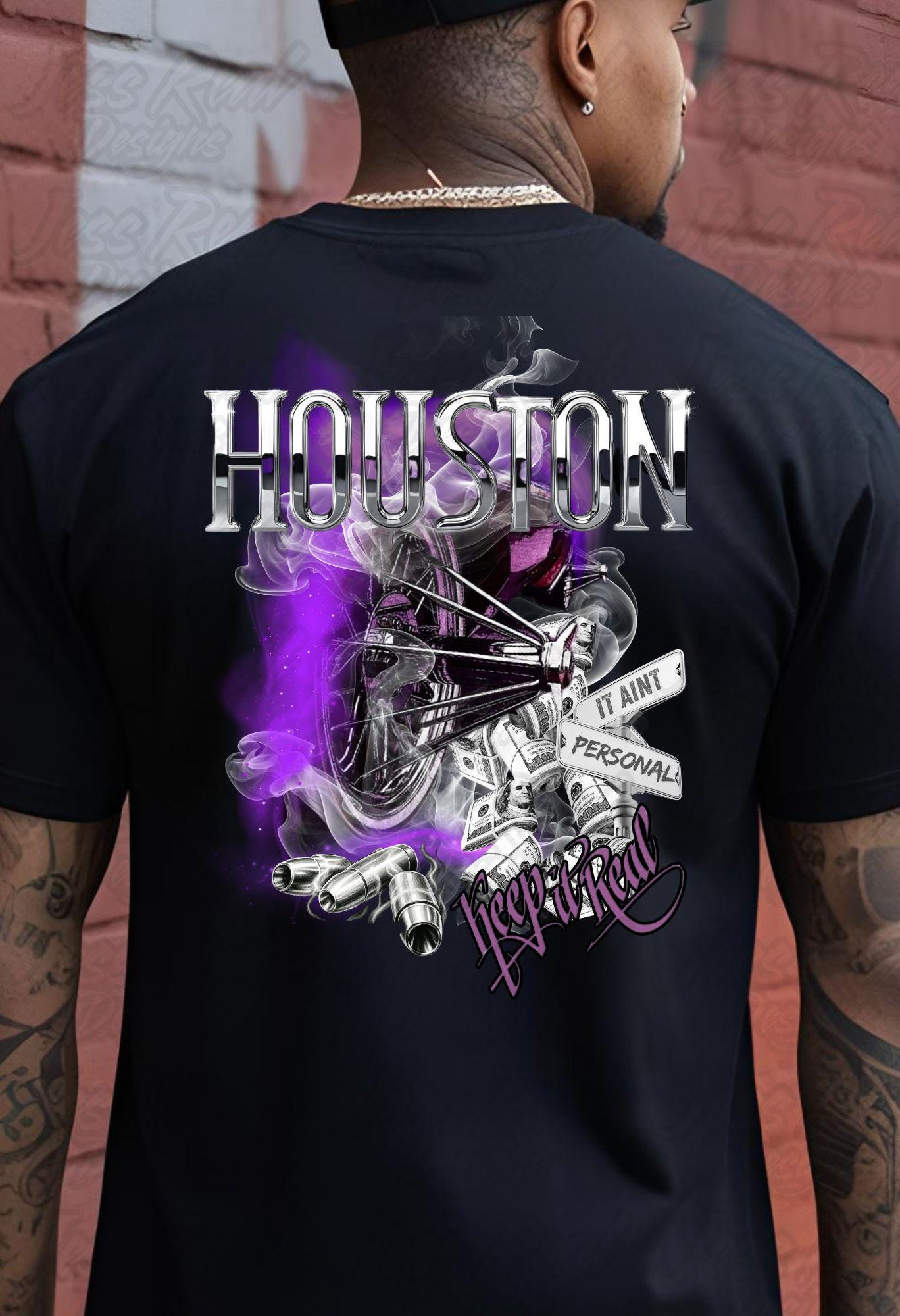 This black streetwear shirt from Jess Real Designs embodies Houston’s famous swangger culture, blending urban style with deep cultural pride. Crafted for those who wear their heritage boldly, it captures the essence of Houston’s unique vibe and spirit. Perfect for everyday wear, this shirt celebrates the love and authenticity of the city’s vibrant community.