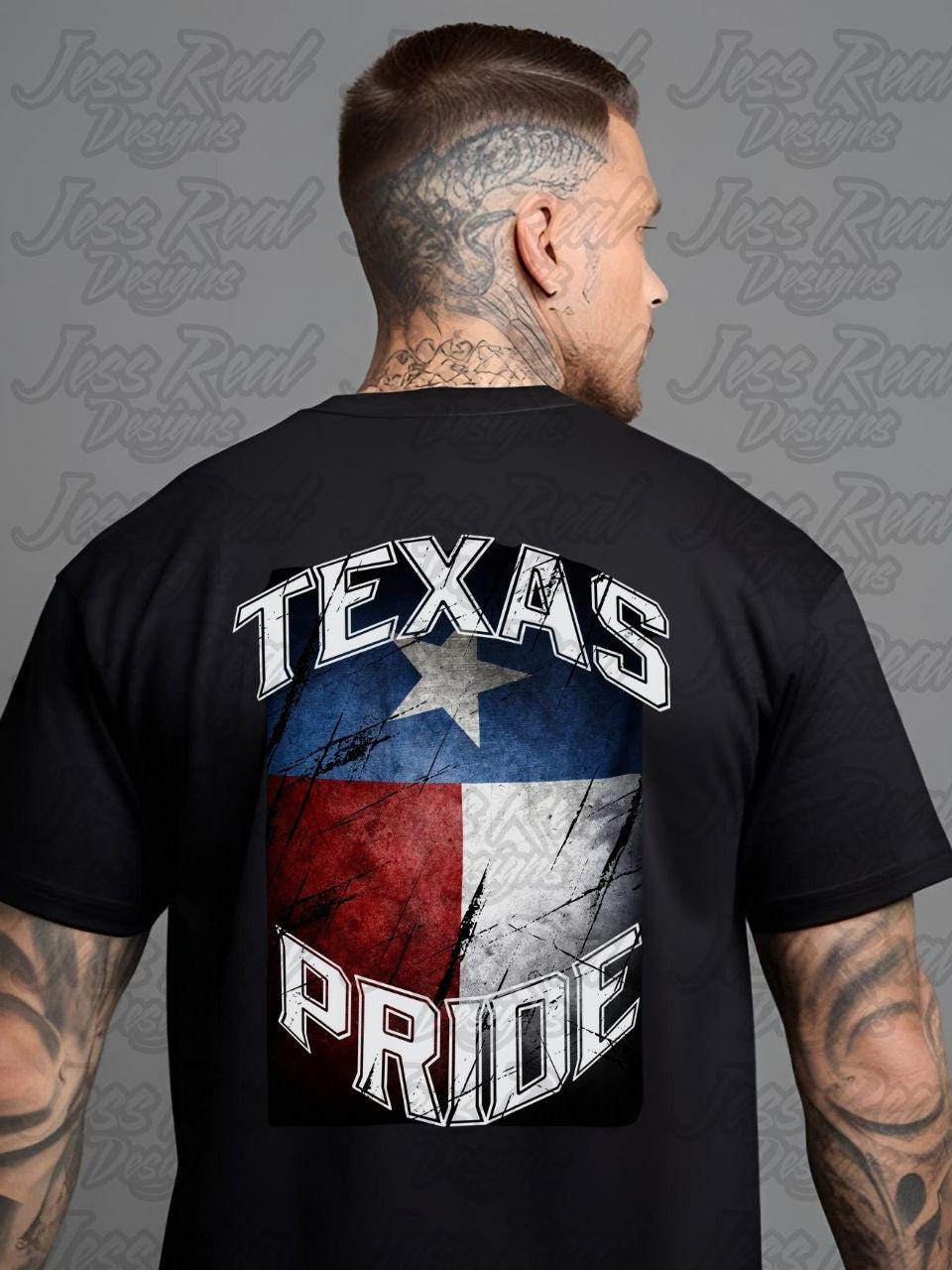 Rep the Lone Star State with bold attitude in this “Texas Pride” tee — a black shirt that speaks loud without saying a word. This design features a distressed, grunge-style Texas flag with a cracked texture that adds raw energy and edge. The words TEXAS and PRIDE are printed in bold, cracked varsity lettering to give that hard-hitting, street-tough finish.