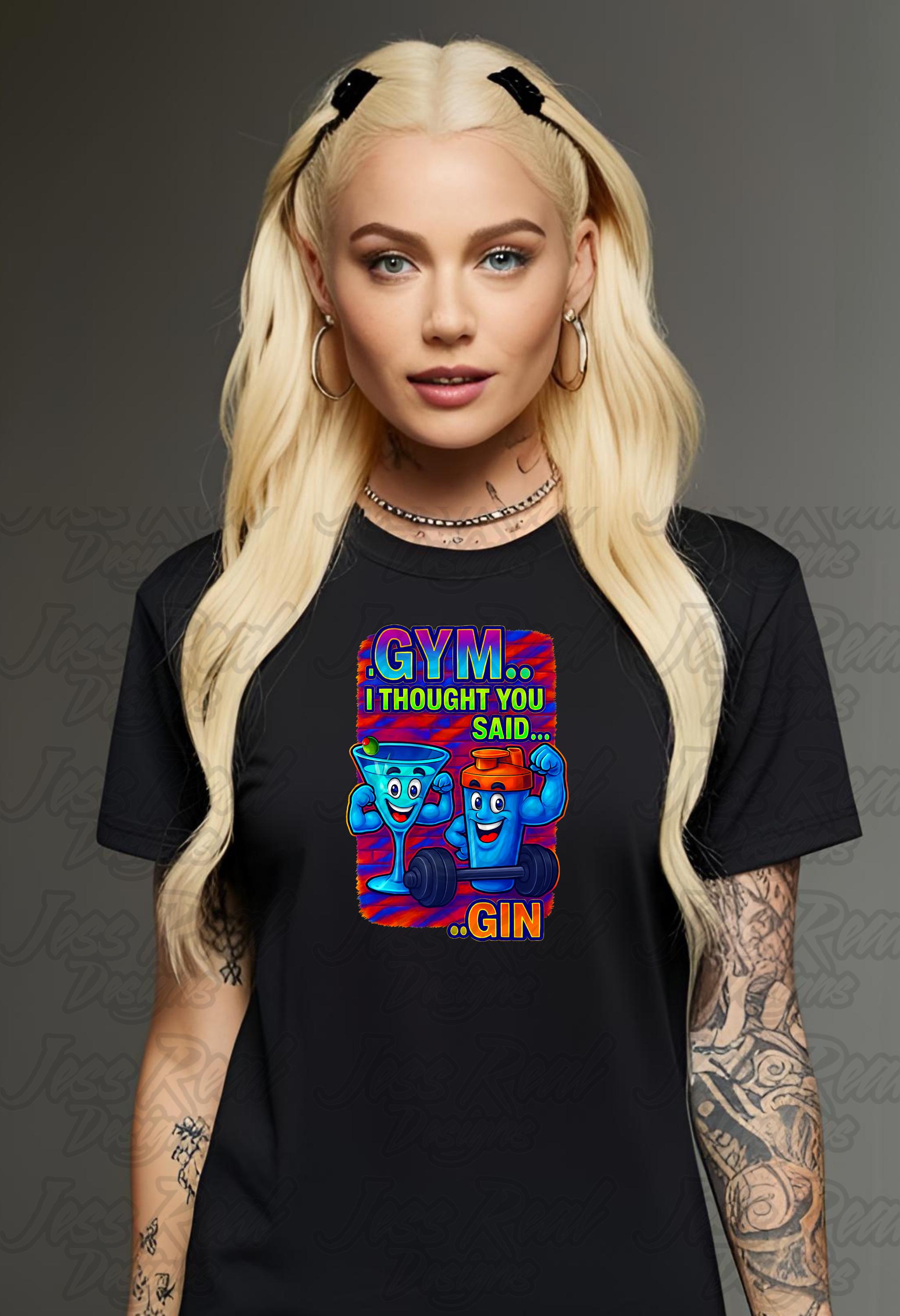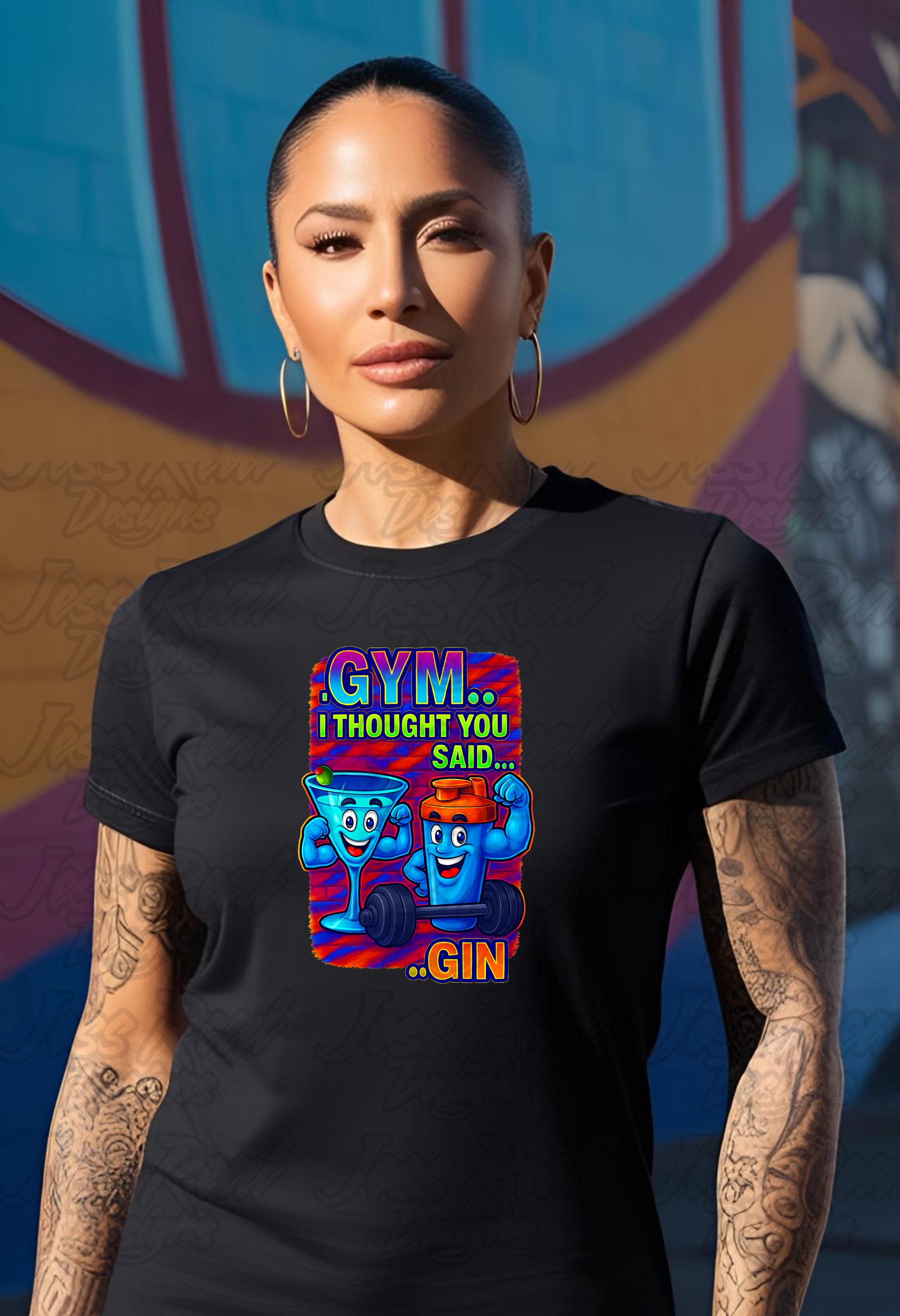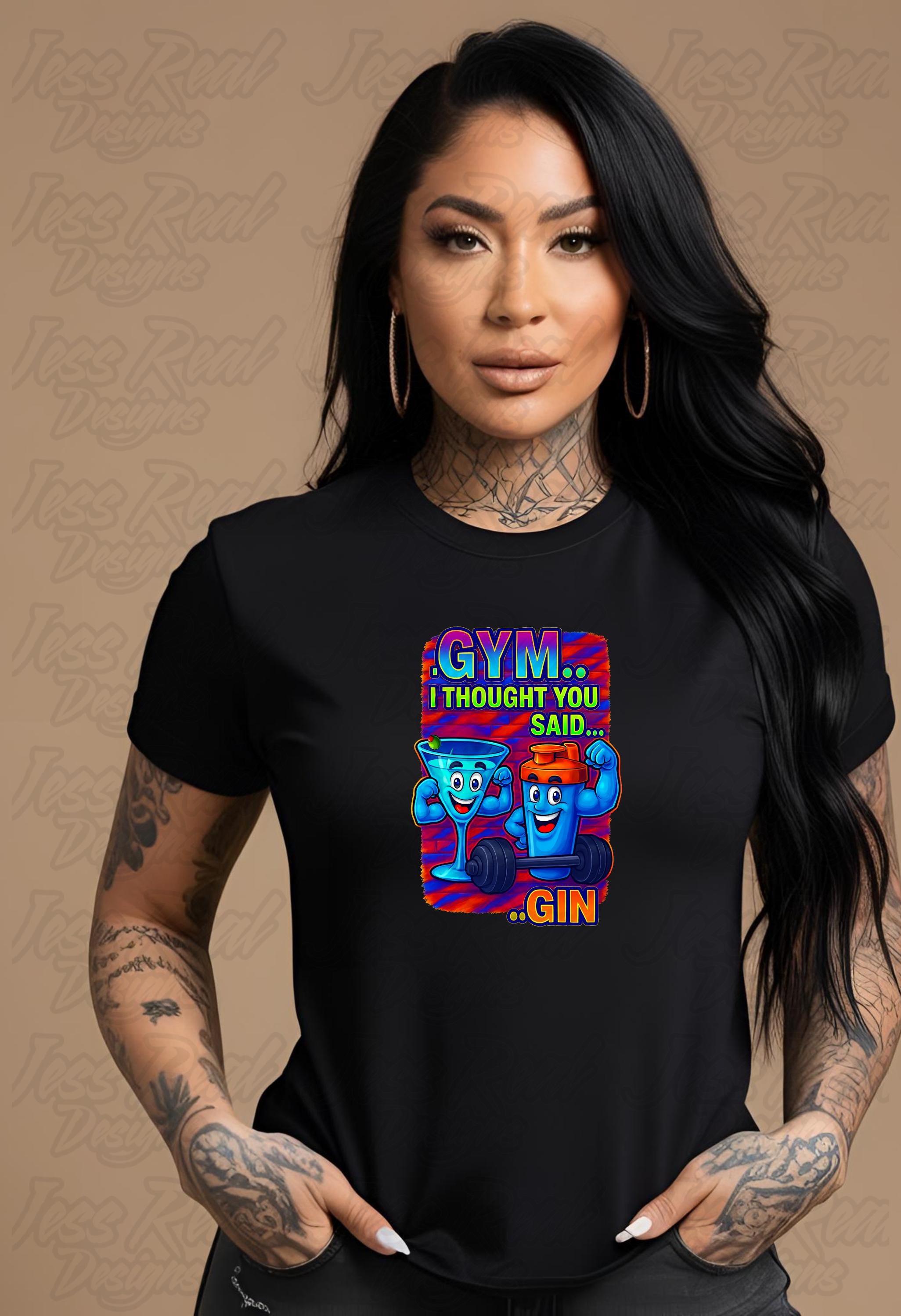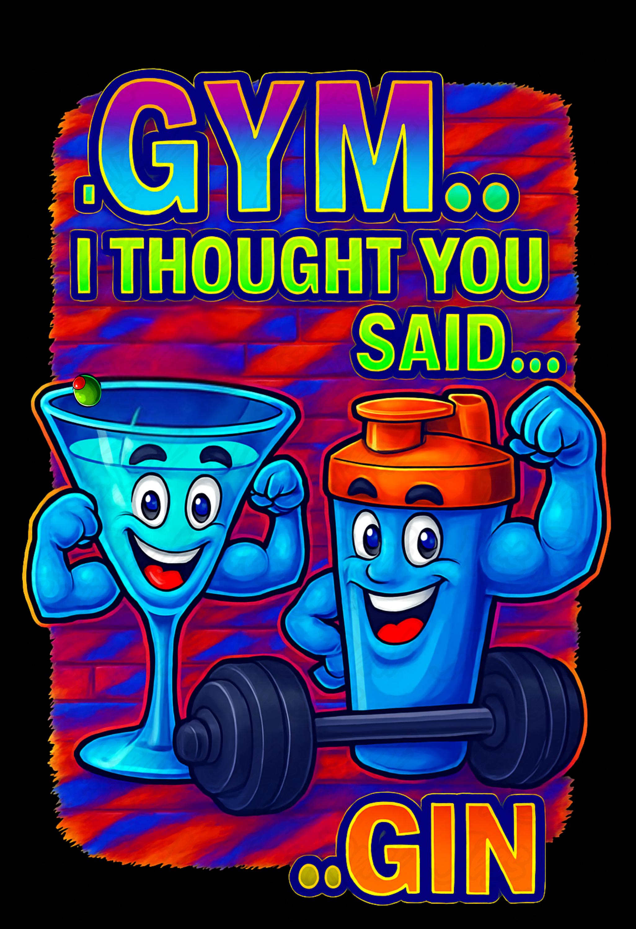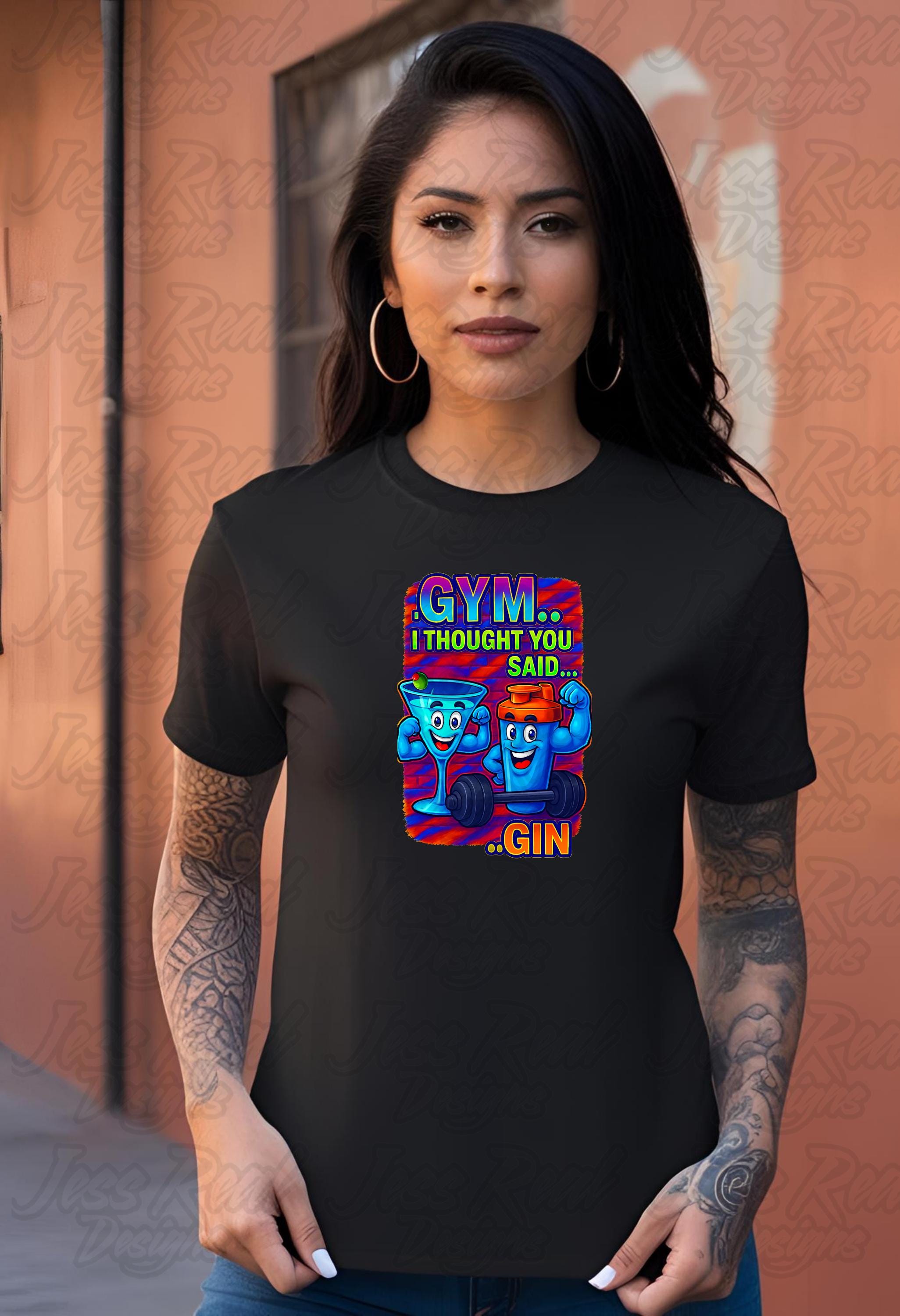 Bring a smile to your day with this bold and hilarious Jess Real Designs streetwear tee! Perfect for those who love the gym… or maybe just a good gin & tonic, this shirt features a vibrant, high-quality DTF print on a classic black Gildan tee. The design pops with bright, saturated colors and crisp details, making it a true conversation starter.