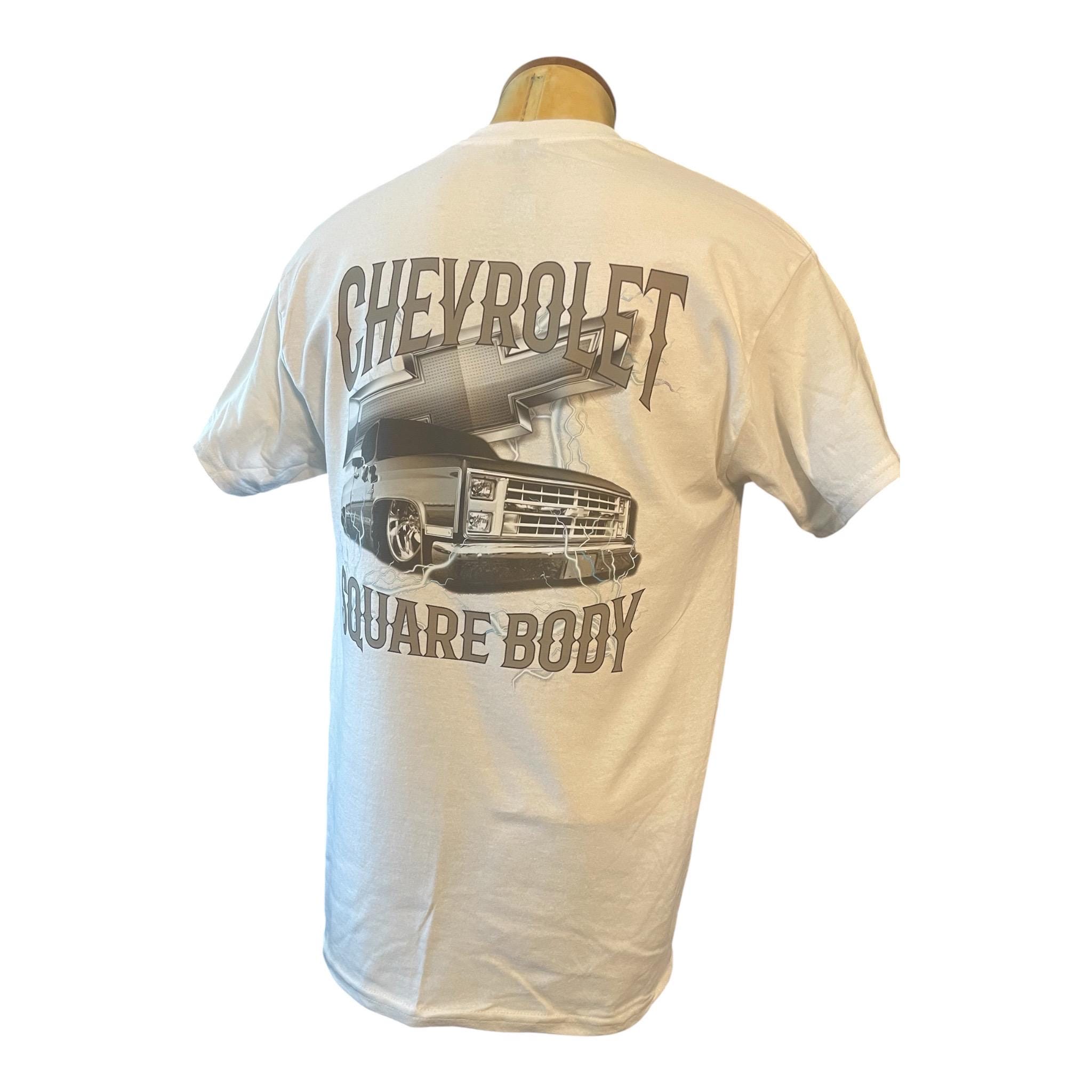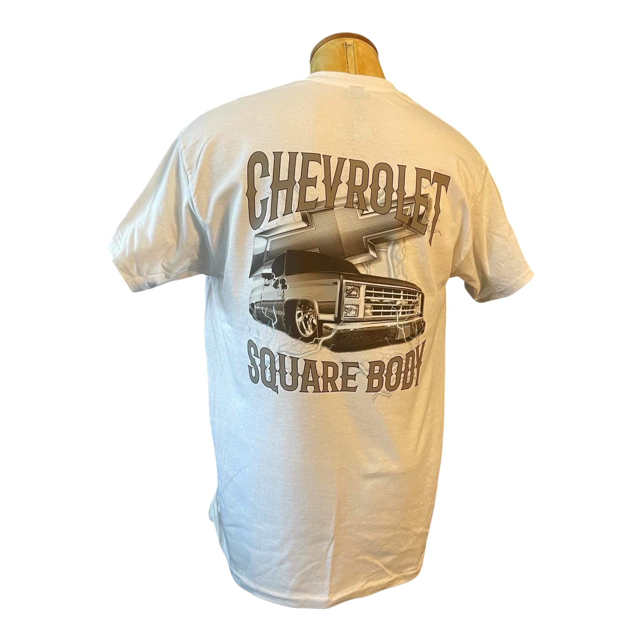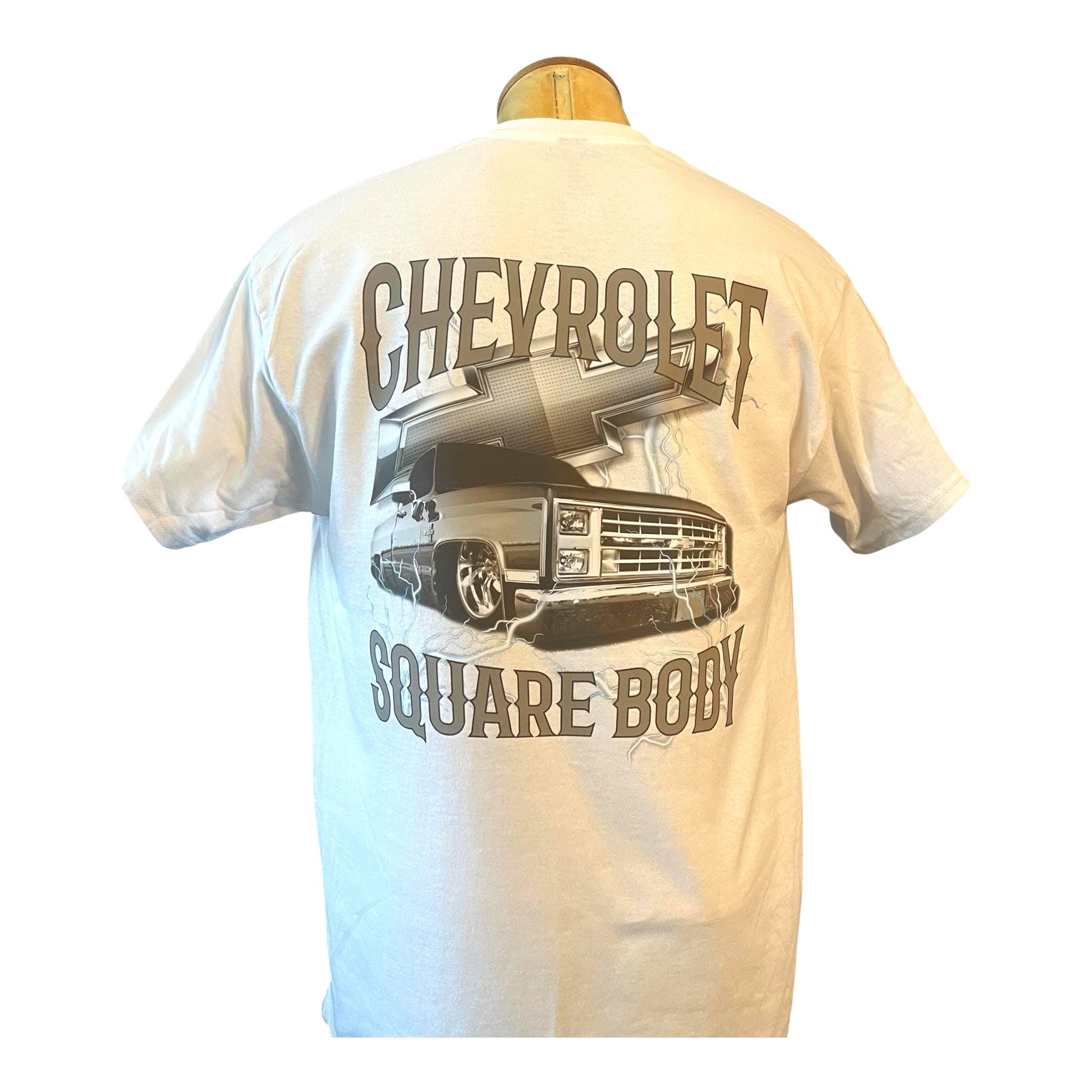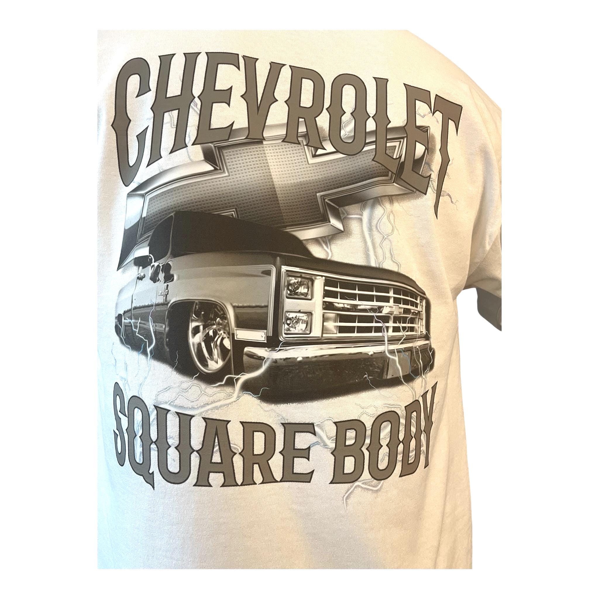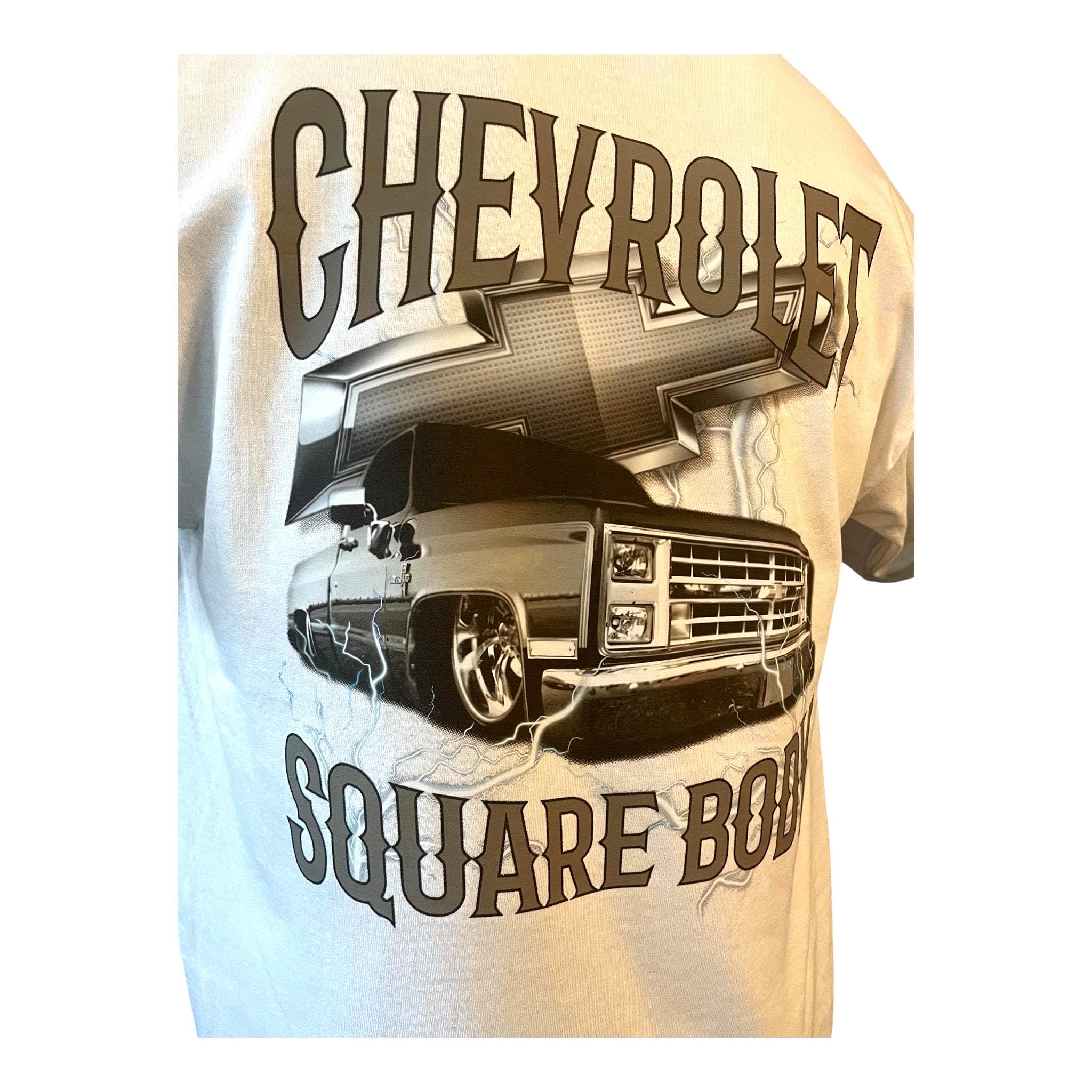 Show off your love for classic trucks with this bold Chevrolet Square Body T-Shirt. Featuring a sleek custom graphic of the legendary square body Chevy truck, complete with lightning accents and a powerful 3D-style design, this shirt is a must-have for truck enthusiasts and car culture fans.